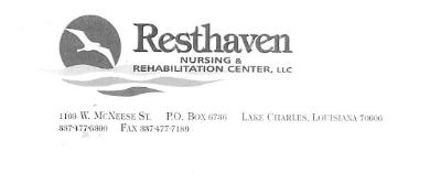 Resthaven Nursing Rehabilitation Center LLC is located on over ten acres of beautifully landscaped grounds in a quiet residential area of Lake Charles just off West McNeese Street. Build a Successful Career Helping Others. Rest Haven Homes founded in 1941 is a senior-care community to over 100 residents.